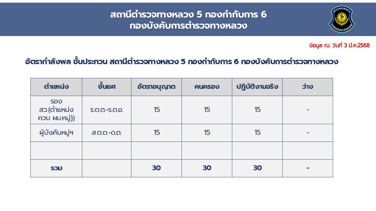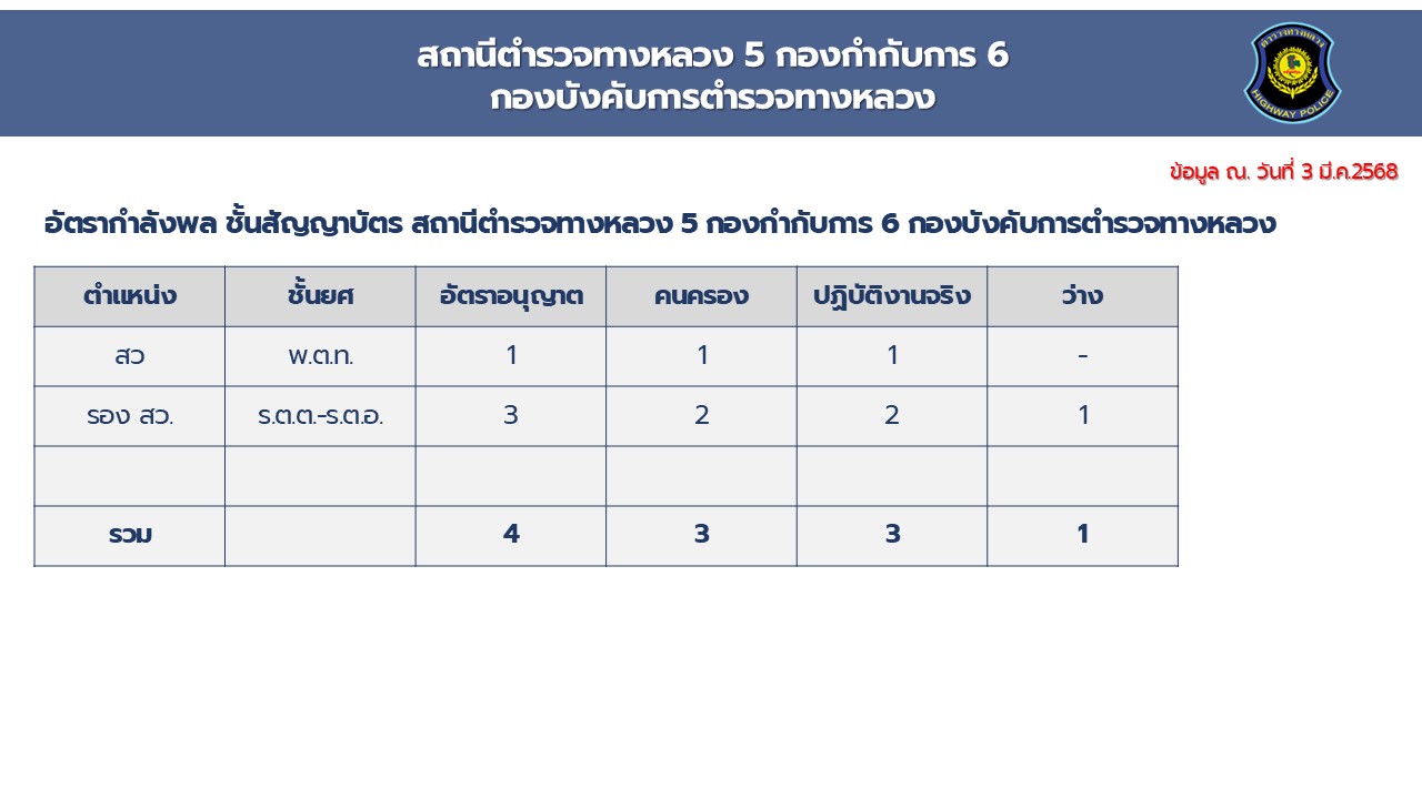 O2 ข้อมูลผู้บริหาร อัตรากำลังและพื้นที่ที่รับผิดชอบ